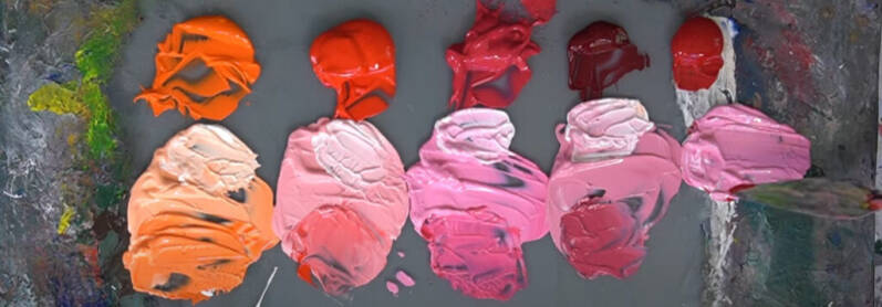 On the image below you see the following colors in combination with titanium white (from left to right): vermillion, pyrolle red, cadmium red medium, magenta