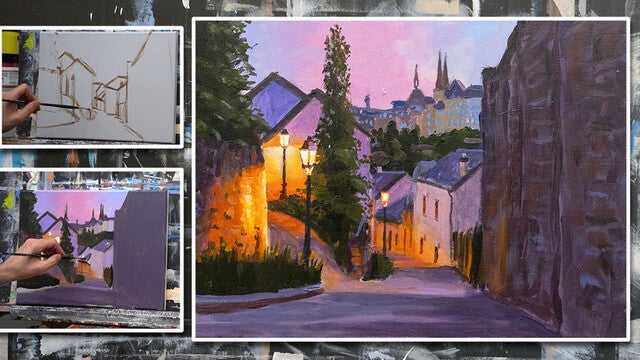 Painting a ferry at sunset with acrylics (00:59:19)