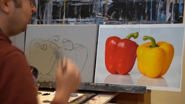Painting bell peppers with acrylics.